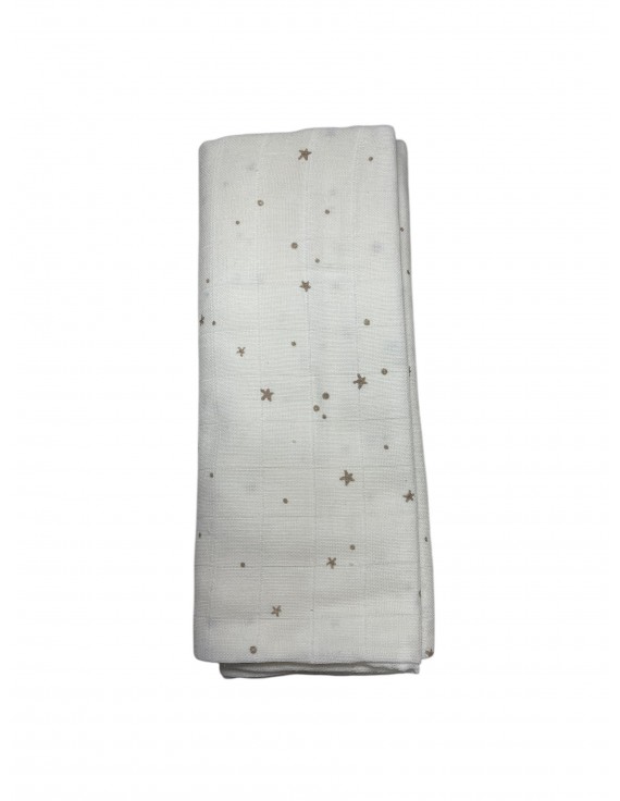 Lange mousseline de coton 70x70 cm beige étoiles bronzes. 100% coton BIO