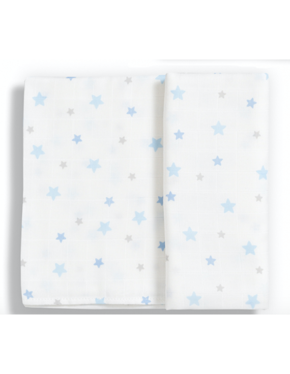 Lange mousseline de coton 50x50 cm étoiles grises et bleues. 100% coton BIO