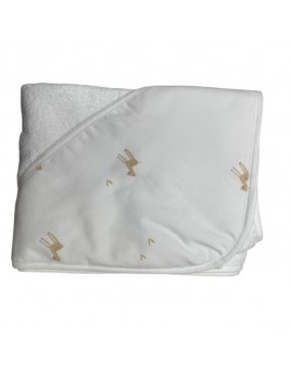 Cape de bain oie 90x90 cm, 100% coton BIO ,assortie avec un gant de toilette blanc.
